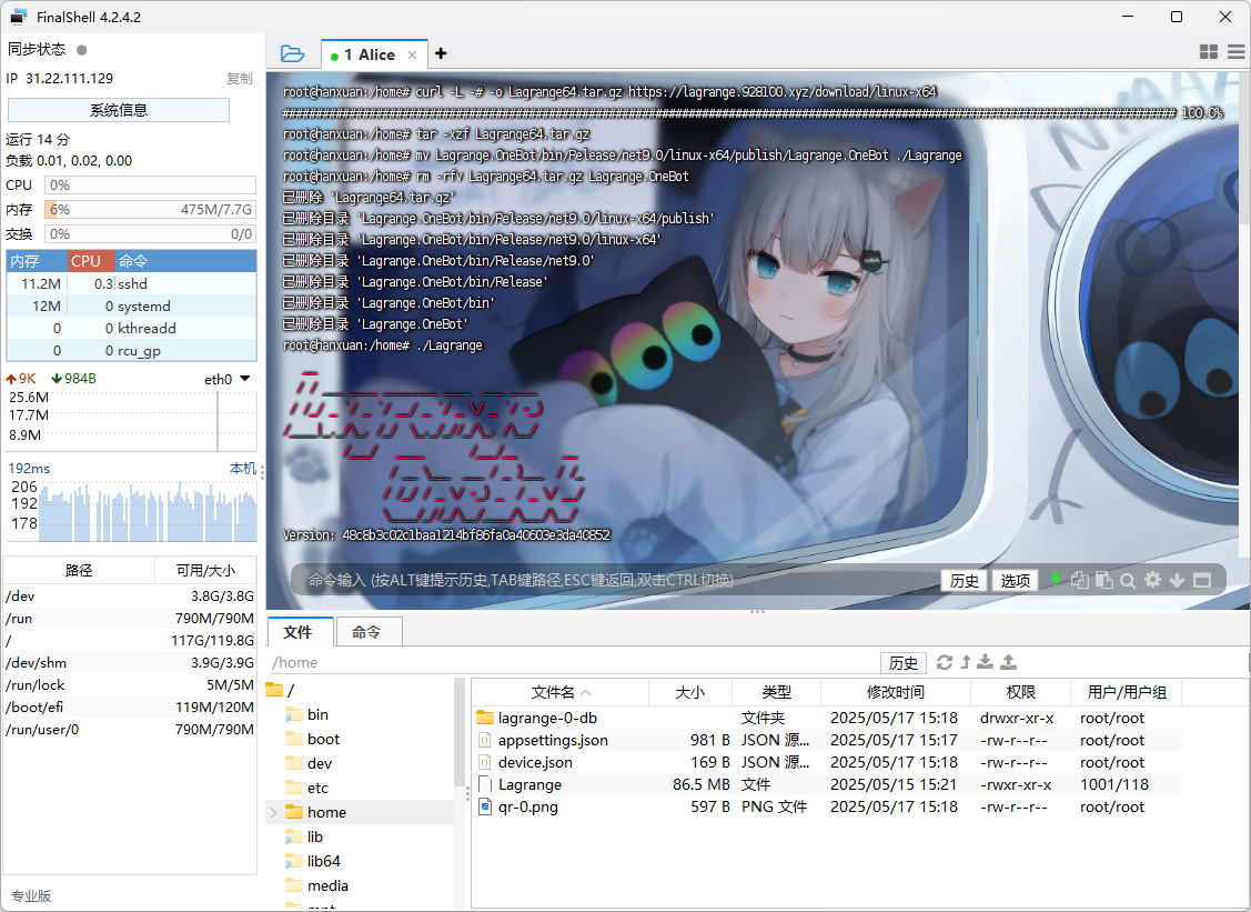 rm -rfv Lagrange64.tar.gz Lagrange.OneBot启动 Lagrange